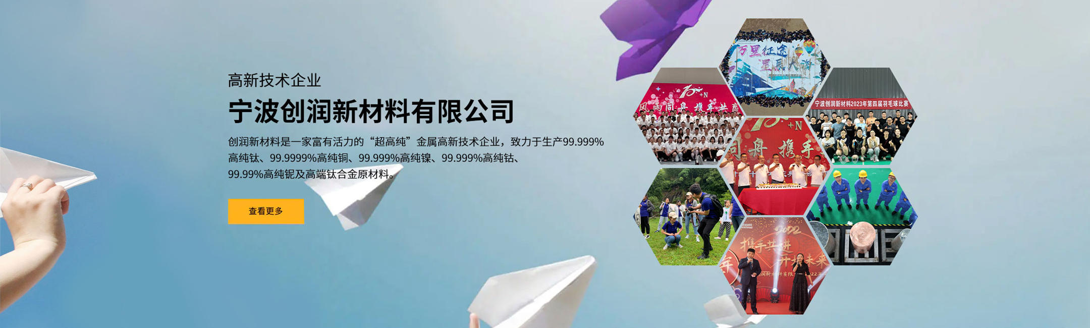 創(chuàng)潤新材料是一家富有活力的“超高純”金屬高新技術(shù)企業(yè),致力于生產(chǎn)超高純金屬原材料。產(chǎn)品涉及半導(dǎo)體靶材,航空發(fā)動(dòng)機(jī),生物醫(yī)療用高純金屬, 軍工用特殊性能材料等。是國內(nèi)唯一的超高純鈦金屬產(chǎn)業(yè)生產(chǎn)基地,使中國躋身為世界上僅有的三個(gè)擁有該技術(shù)和產(chǎn)線的國家之一。經(jīng)過多年的市場開拓與客戶驗(yàn)證,創(chuàng)潤逐步形成了超高純鈦、銅、鎳、鈷、鈮及高端鈦合金產(chǎn)品體系。
